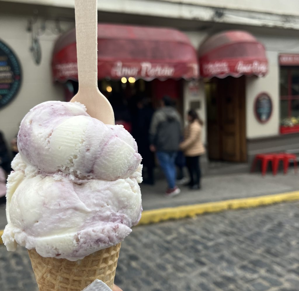 紫のとうもろこしを煮出して作っており、シナモンなどのスパイス、砂糖とレモンがうまーく調合されてます。